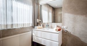 Ausstattung Appartment: 55m² Wohnfläche gemütlichen Wohnraum mit Sitzecke und TV 2 getrennte Schlafzimmer Badezimmer mit Dusche und Doppelwaschbeckenextra WC komplett Ausgestattet Küche: E-Herd, Geschirrspüler, Backofen, Toaster, Kaffe-Maschine, Wasser-Kocher, Geschirr und Besteck